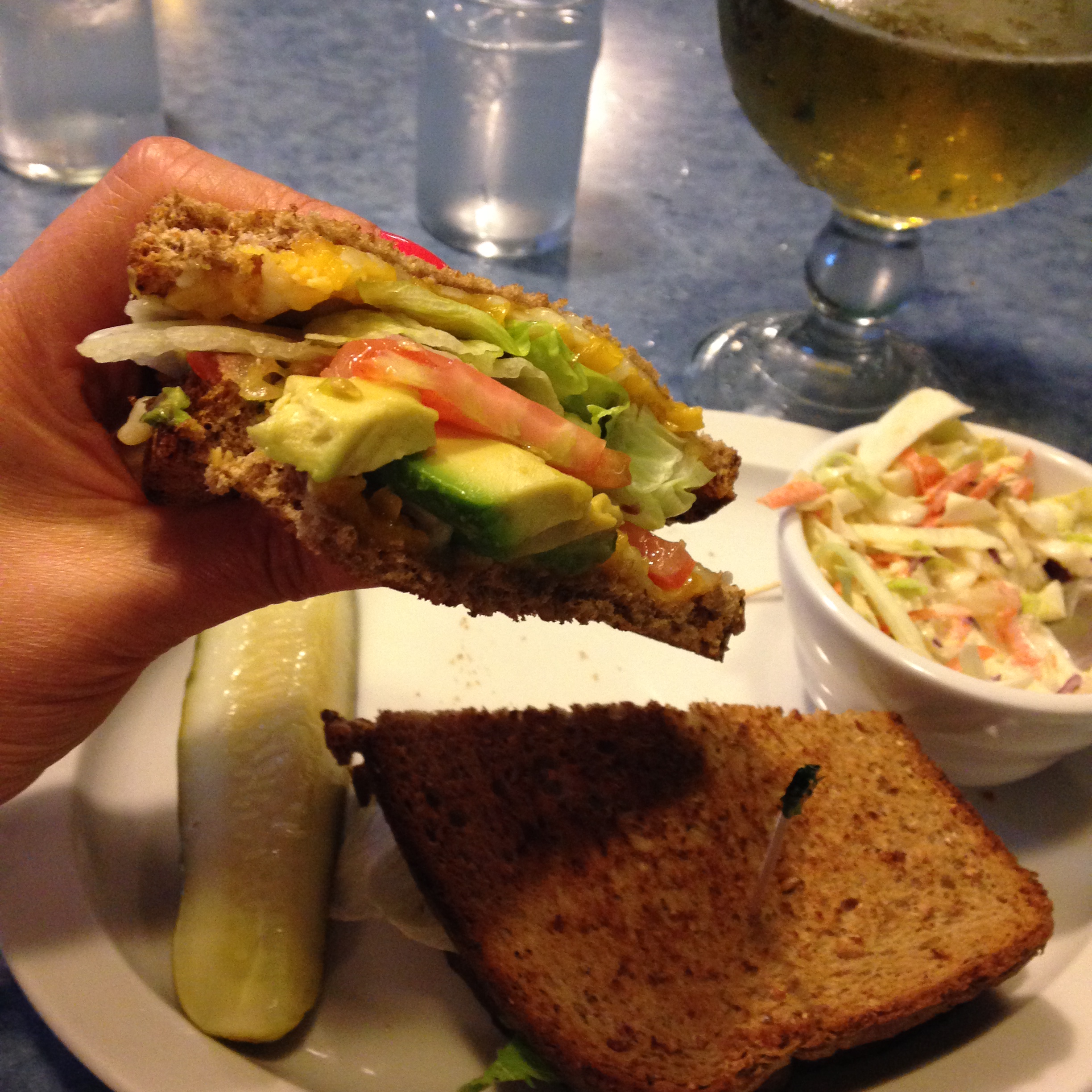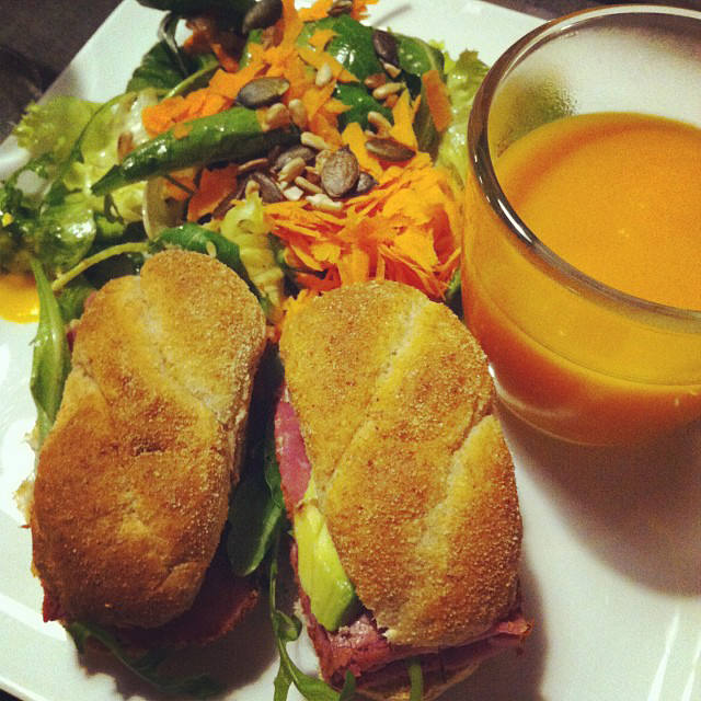 Pour ma part, je me suis cantonnée aux BLT (le fameux bacon, laitue, tomate), souvent moins gras et moins risqué que les hamburgers… J’ai eu parfois la chance de trouver des sandwiches très sympa comme le « Save the meat » à base d’avocat, un délice, j’en ai mangé deux soirs de suite…