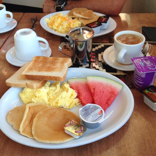 Nous avons assez vite pris l’habitude de faire un énorme petit déjeuner (avec des oeufs, des toasts, des fruits, des gaufres ou des pancakes…). Pour les petits déjeuners, en général, ils sont très forts !