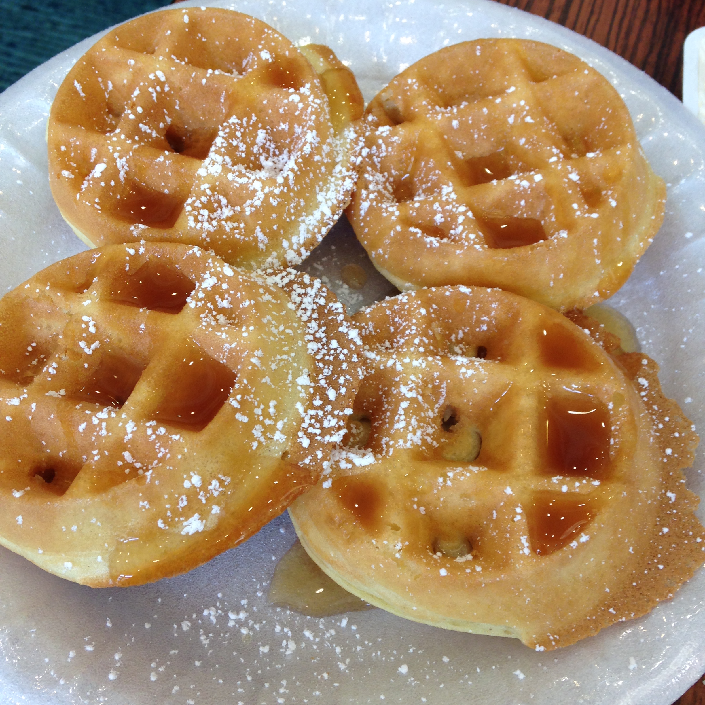 Selon les hôtels, nous avions des buffets plus ou moins garnis mais plusieurs offraient la possibilité de se préparer en libre service des gaufres… Merlin a adoré faire cela ! Et il se débrouillait très bien.