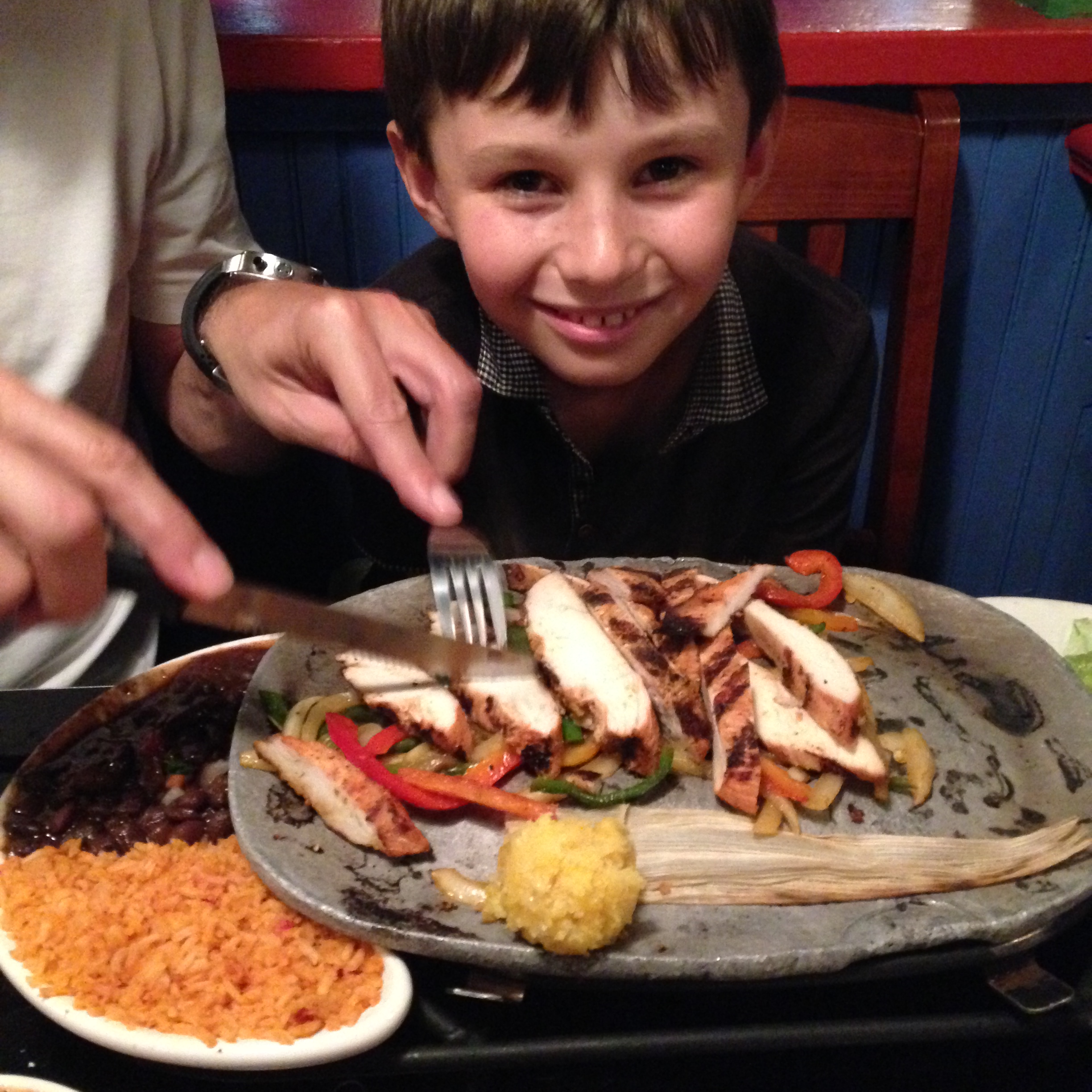 Pour le soir, nous avons testé différentes formules… Celle plébiscitée par Merlin était en général à base de hamburger et frites ! J’exagère, il a quand même mangé des hot-dog aussi et un énorme plat dans un tex-mex…