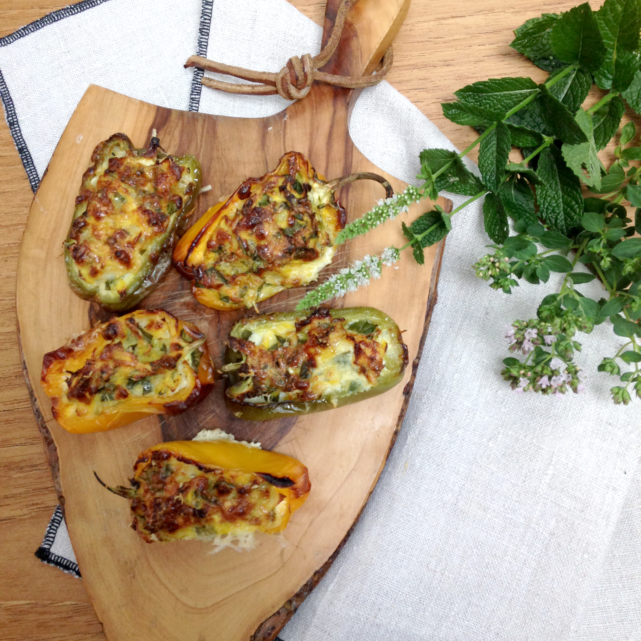 Oui, mais j’en fait quoi ? Ce n’est pas bien gros et c’est dommage de les découper en petits morceaux… Voilà une farce rapide qui vous donnera de jolis poivrons bien dorés et délicieux chauds ou froids à l’apéro ou dans une assiette de tapas…